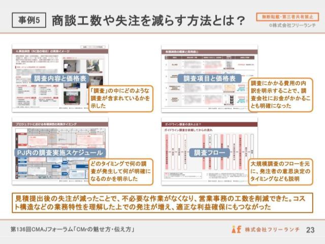 一見分かりづらい「マーケティング」という概念を、いかにして実務に落とし込み、「売れる仕組み」を作っていくかについて、フリーランチがこれまでに手掛けた具体的なサポート事例を交えながら解説いたしました。